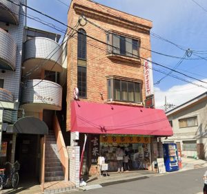 通りに面した大きな間口と、3階建てのしっかりした構造は、今も商いの息づかいを感じさせます。